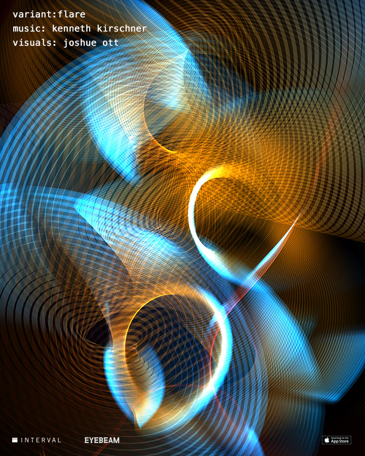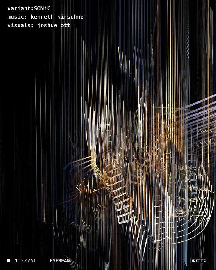 Brooklyn, NY, September 24, 2015 – Interval Studios, creators of Thicket and other pioneering interactive art apps, today released the first apps in the new Variant series. The Variant apps are a series of generative audiovisual artworks featuring visuals by visualist and software designer Joshue Ott and music by experimental composer Kenneth Kirschner. Available on iOS for iPad and iPhone, each of the apps features a unique visual composition, a different indeterminate musical composition, and a distinct approach to user interaction. All of the Variants are generative artworks that bring together chance and interactivity to create an ever-changing, ever-evolving audiovisual experience. The Variants will be an ongoing series, with three apps now available – variant:flare, variant:blue, and variant:SONiC – and more coming soon.