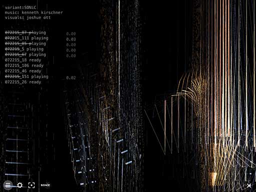 variant:SONiC, a free app commissioned by the American Composers Orchestra for the 2015 SONiC Festival, couples the digitally transformed sounds of the festival’s performers with tightly integrated visuals and a tactile, highly responsive approach to interactivity.